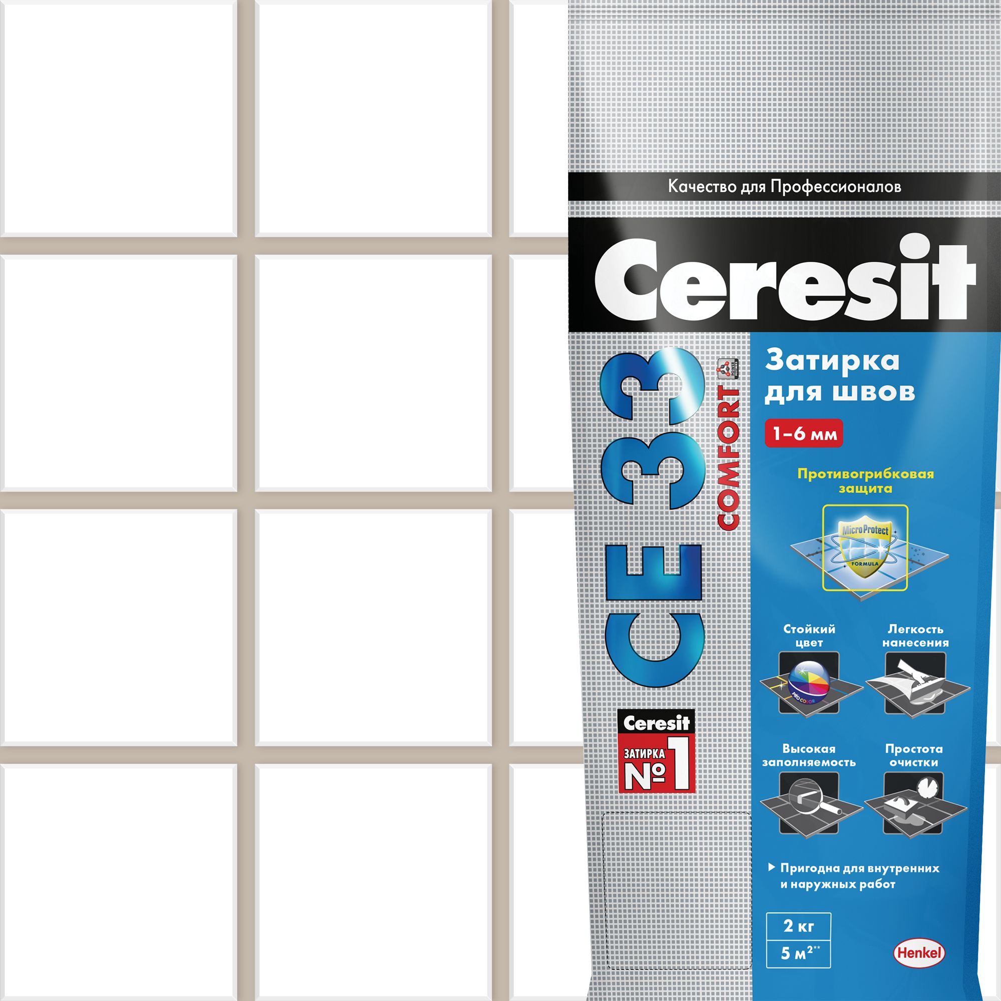 Ceresit CE 33 — тонкошовная затирка с противогрибковым эффектом, для внутренних и внешних работ. Пригодна для эксплуатации внутри влажных помещений: ванных, душевых, крытых бассейнов.