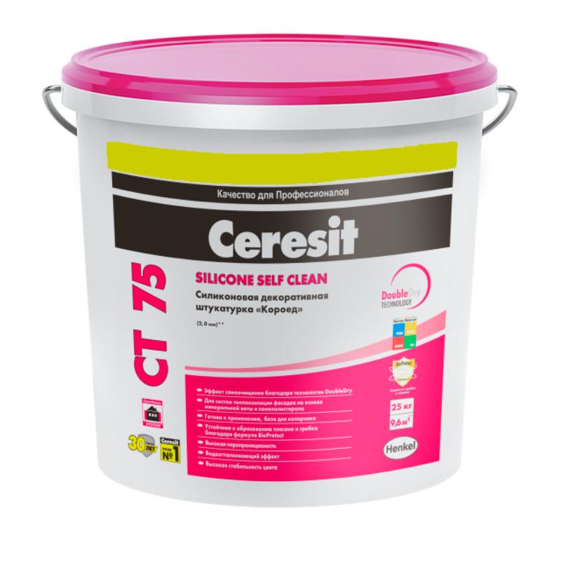 Ceresit CT 75 - это высококачественная силиконовая декоративная штукатурка с зернистой фактурой, предназначенная для создания тонких декоративных покрытий. Этот материал идеально подходит для использования на бетонных основаниях, традиционных и гипсовых штукатурках, древесностружечных плитах, гипсокартоне и других поверхностях как внутри, так и снаружи зданий.